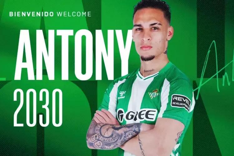 安东尼2022年8月30日以9500万欧的转会费从阿贾克斯转会至曼联,他总共代表曼联出场96次,打进12球并有5个助攻,今年一月安东尼被租借至贝蒂斯,半个赛季他总共代表贝蒂斯出场26次,打进9球并有5次助攻,帮助球队获得了新赛季欧联资格,并且打进欧协联决赛,但最终不敌切尔西屈居亚军。