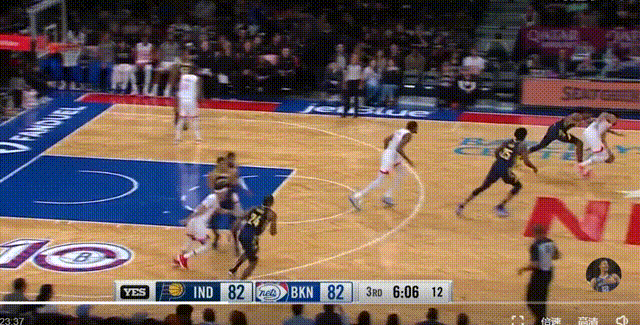 西蒙斯转身篮下,空篮不上选择了传球队友硬上,博得了犯规。